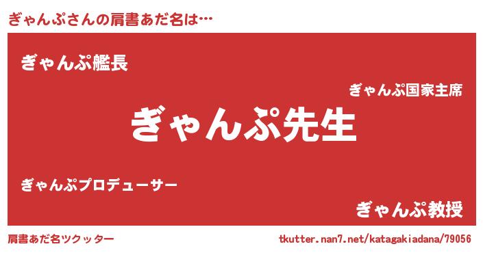 | ヘコむあだ名 | 『ぎゃんぷ(小並感)』『豆乳』 |