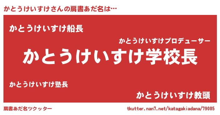 | ヘコむあだ名 | 『かとうけいすけ(爆)』『かと太郎』 |