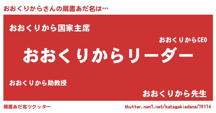 | 意味不明あだ名 | 『とにかく怪しいおおくりから』 |