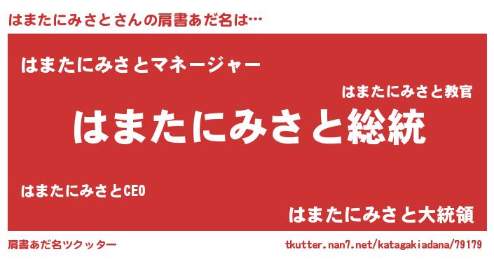 | 意味不明あだ名 | 『自称はまたにみさと』 |