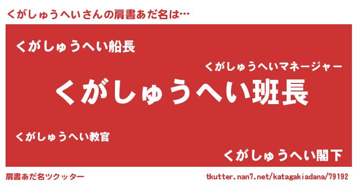| 意味不明あだ名 | 『とにかく怪しいくがしゅうへい』 |