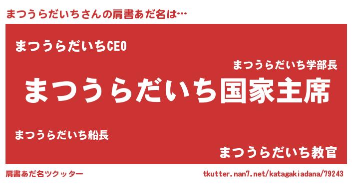 | 欧米人風あだ名 | 『まつうらだいちクリステル』 |