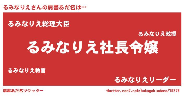 | 女子向けラノベタイトル風あだ名 | 『るみなりえ姫と円卓の騎士』 |