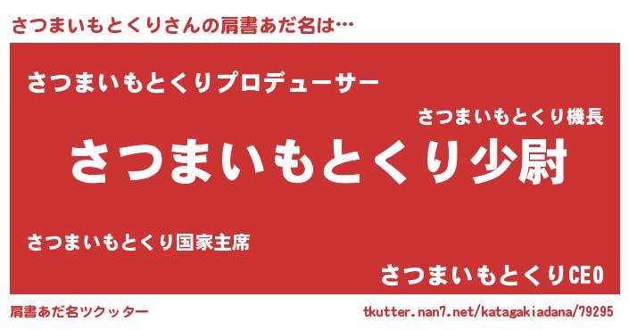 | 男性向けラノベタイトル風あだ名 | 『サツマイモトクリスレイヤー』 |