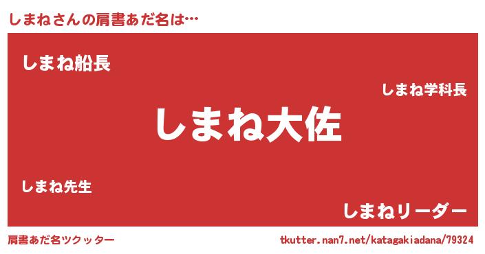 | 女子向けラノベタイトル風あだ名 | 『しまねの玉の輿計画!』『しまね恋絵巻』 |