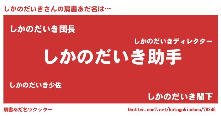| ヘコむあだ名 | 『しかっ子』『しかのだいき(小並感)』 |