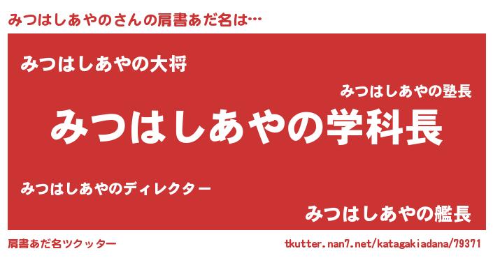 | 胡散臭い通販商品みたいなあだ名 | 『モンドセレクションを受賞した隕石のかけら…その名も「みつはしあやの」』 |