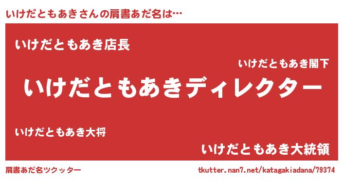 | 男性向けラノベタイトル風あだ名 | 『いけだともあきに滅ぼされるだけの簡単なお仕事です』 |