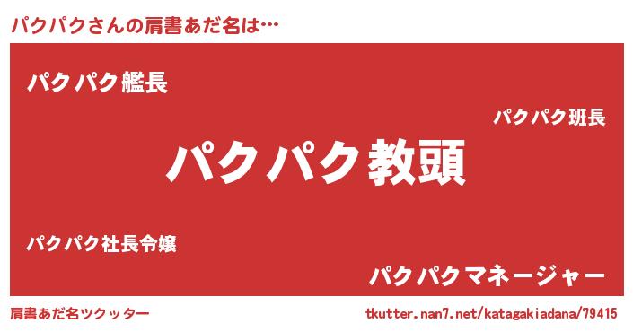 | 意味不明あだ名 | 『永久保存パクパク』『ペロリンパクパク』 |