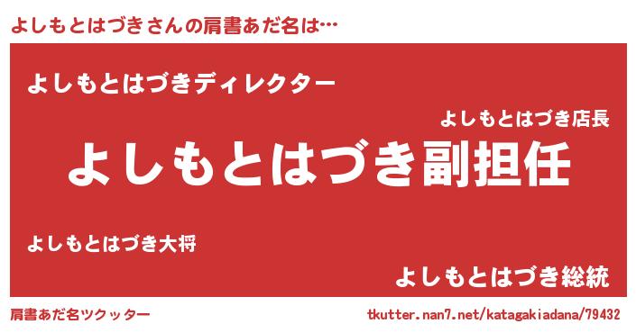 | ヘコむあだ名 | 『よしもとはづき(遠い目)』『よしふぇ~』 |