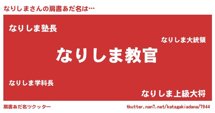| 男性向けラノベタイトル風あだ名 | 『この素晴らしい世界になりしまを!』 |