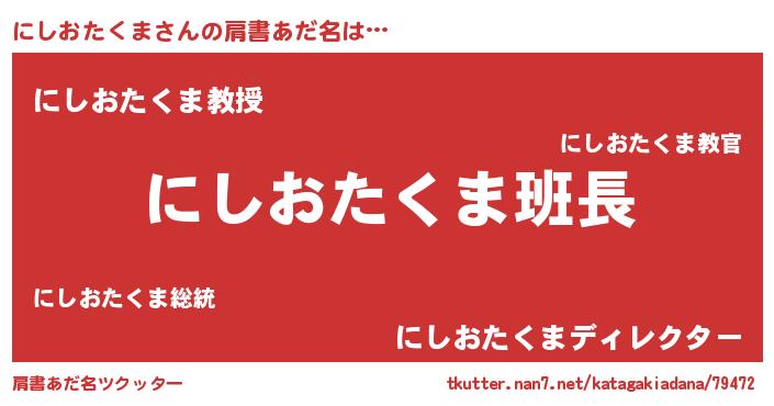 | 意味不明あだ名 | 『とにかく怪しいにしおたくま』 |