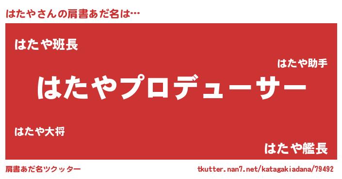 | 意味不明あだ名 | 『とにかく怪しいはたや』『自称はたや』 |