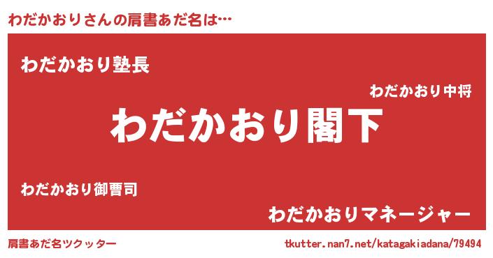 | ポケモン風あだ名 | 『ワダセウス』『ヒワダカオリ』 |
