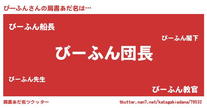 | 意味不明あだ名 | 『とにかく怪しいびーふん』 |