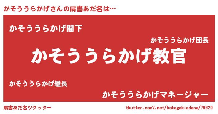| 男性向けラノベタイトル風あだ名 | 『この素晴らしい世界にかそううらかげを!』 |