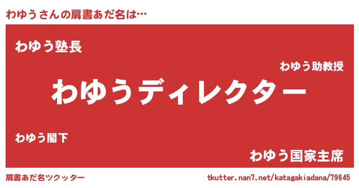 | 意味不明あだ名 | 『とにかく怪しいわゆう』『自称わゆう』 |