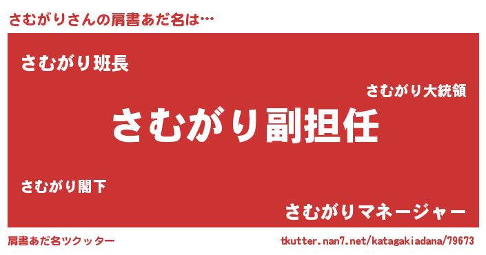 | 意味不明あだ名 | 『永久保存さむがり』『自称さむがり』 |