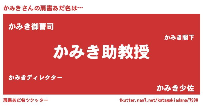 | 意味不明あだ名 | 『眠気覚ましガムかみき味』『自称かみき』 |