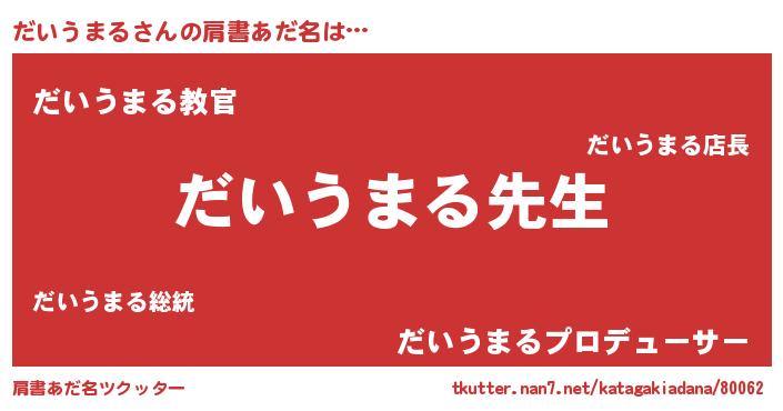 | ヘコむあだ名 | 『だいうまる(笑)』『だいにー』 |