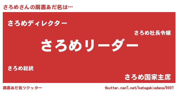 | ヘコむあだ名 | 『さろぷりん』『牛乳』『さろもー』 |