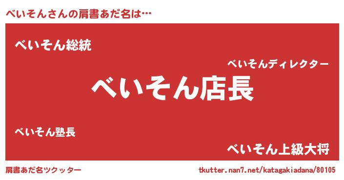 | 意味不明あだ名 | 『ペロリンべいそん』『自称べいそん』 |