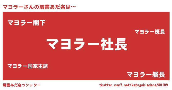 | ヘコむあだ名 | 『マヨにー』『マヨお』『なまこ酢』 |