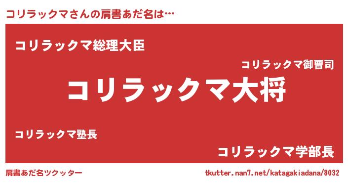 | 男性向けラノベタイトル風あだ名 | 『転生したらコリラックマだった件』 |