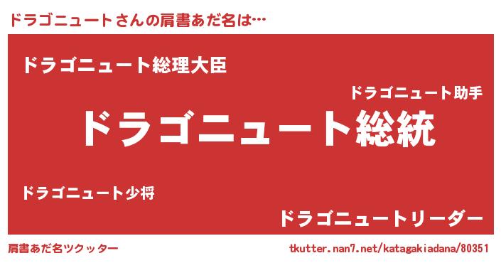 | 女子向けラノベタイトル風あだ名 | 『ドラゴニュートなんてお断りですっ。』 |