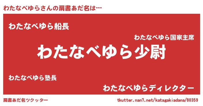 | 女子向けラノベタイトル風あだ名 | 『わたなべゆらの玉の輿計画!』 |