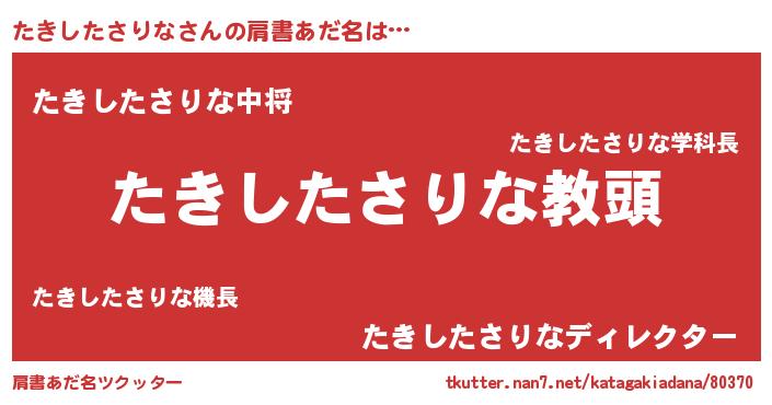 | 男性向けラノベタイトル風あだ名 | 『たきしたさりなという概念が存在しない退屈な世界 』 |