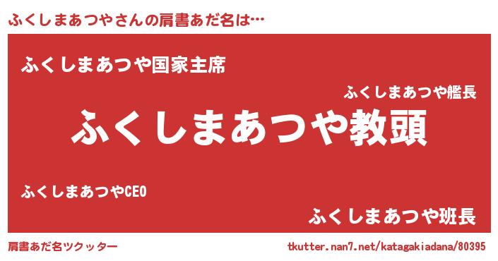 | 男性向けラノベタイトル風あだ名 | 『ふくしまあつやという概念が存在しない退屈な世界 』 |