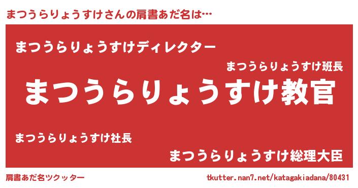 | 意味不明あだ名 | 『住所不定無職まつうらりょうすけ(59歳)』 |
