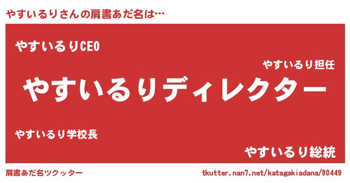 | 男性向けラノベタイトル風あだ名 | 『やすいるりに滅ぼされるだけの簡単なお仕事です』 |