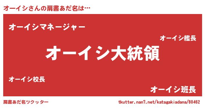 | 意味不明あだ名 | 『オーイシフォーエバー』『自称オーイシ』 |