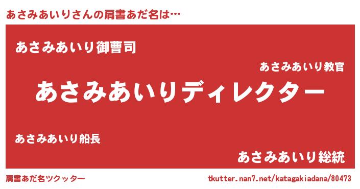 | 男性向けラノベタイトル風あだ名 | 『はたらくあさみあいりさま!』 |
