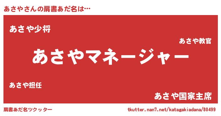 | 意味不明あだ名 | 『つくし科あさや属』『永久保存あさや』 |