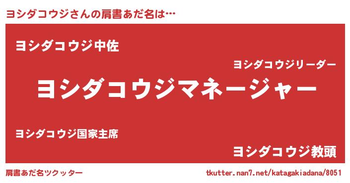 | 欧米人風あだ名 | 『アンジェラ・ヨシダコウジ』 |