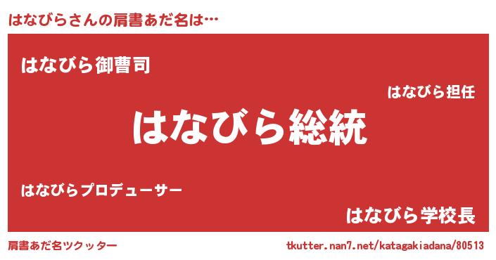 | ヘコむあだ名 | 『はなっふぃ~』『はなびら(遠い目)』 |