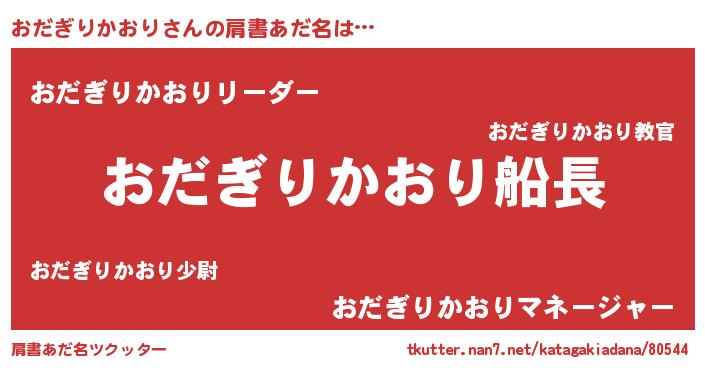 | 男性向けラノベタイトル風あだ名 | 『うちのおだぎりかおりが世界を掌握している!』 |