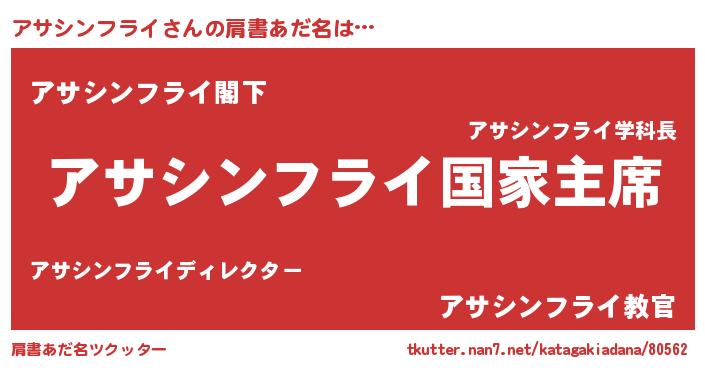 | 欧米人風あだ名 | 『アサシンフライクリステル』 |