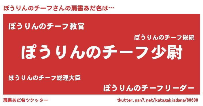 | 欧米人風あだ名 | 『トリンドルぽうりんのチーフ』 |