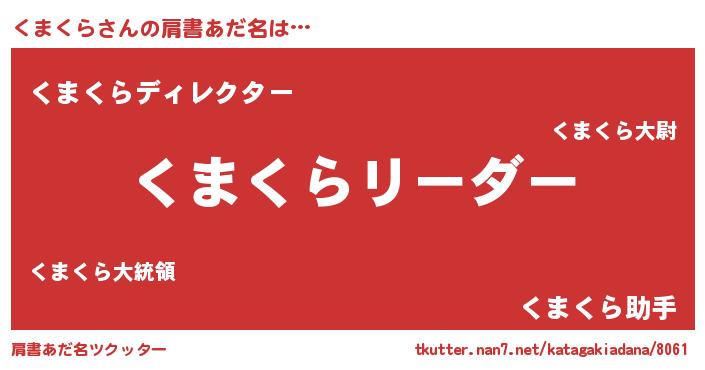 | 意味不明あだ名 | 『とにかく怪しいくまくら』 |
