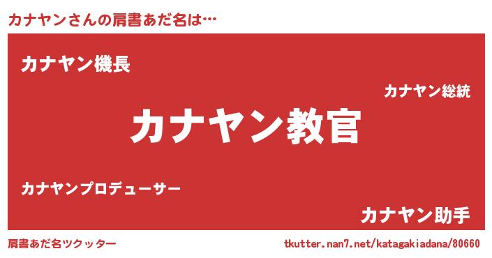 | 意味不明あだ名 | 『住所不定無職カナヤン(7歳)』 |
