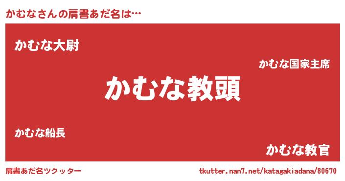 | ヘコむあだ名 | 『かむな(笑)』『なまこ酢』 |