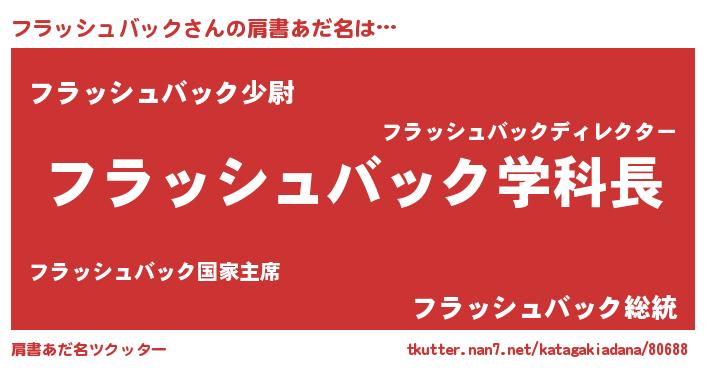 | 男性向けラノベタイトル風あだ名 | 『おまえをオタクにしてやるから、俺をフラッシュバックにしてくれ! 』 |