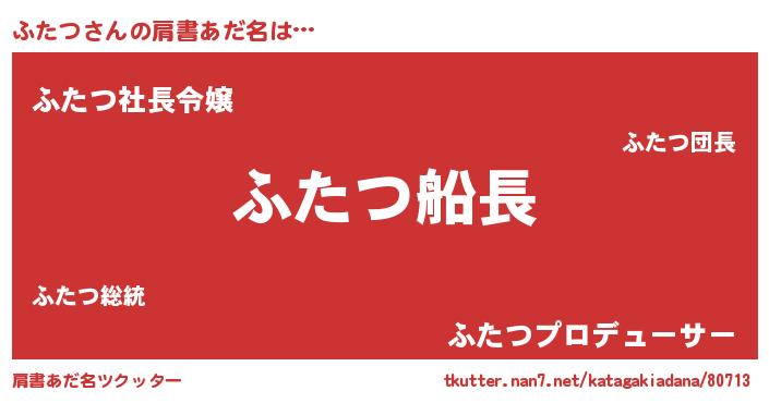 | ヘコむあだ名 | 『ふたにー』『ふたっちょ』 |