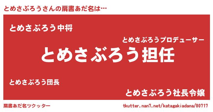 | 意味不明あだ名 | 『永久保存とめさぶろう』 |