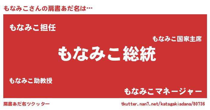 | 意味不明あだ名 | 『自称もなみこ』『永久保存もなみこ』 |