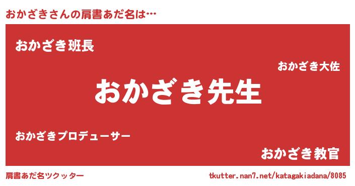| 意味不明あだ名 | 『永久保存おかざき』『自称おかざき』 |